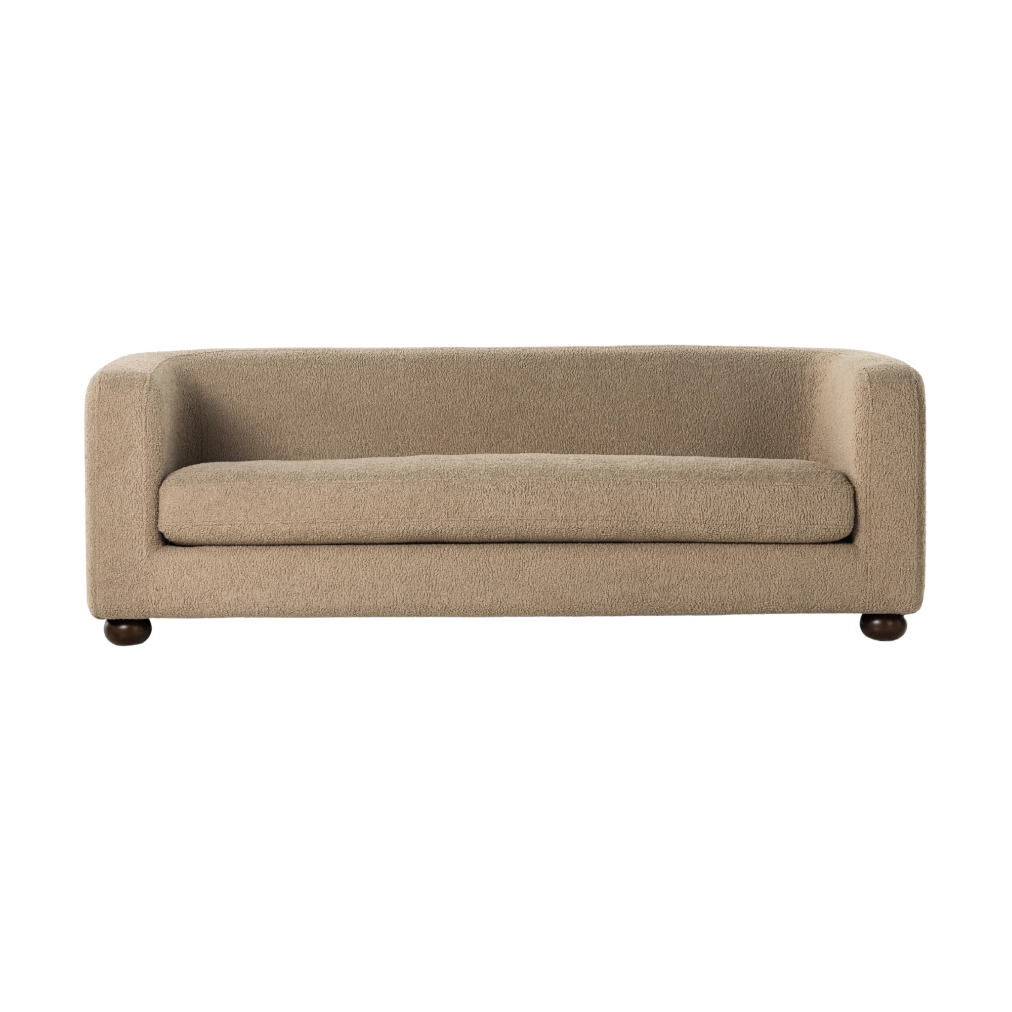 Inspired by vintage flea market finds, the Gidget Sheepskin Camel Sofa is a faux shearling-upholstered sofa pairs that is simple silhouette with clean, sweeping curves. Bench-seat cushioning plus feather-blend seating for total comfort. Amethyst Home provides interior design services, furniture, rugs, and lighting in the Seattle metro area.