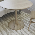 Featuring Oak Round Torsion Dining Table by Ethnicraft at Amethyst Home. Airy with subtle complexities, this Oak Round Torsion Dining Table incorporates advanced woodworking techniques to create a light table top with a torsaded base of sculptural elegance -- sure to elevate the look for any dining or kitchen area.