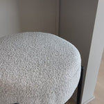 Striking modern exposed frame paired with a dreamy textural boucle fabric.  Comfortable and lean to fit as many stools as possible!  Simply spot clean with soap and water or soak stubborn spills with hydrogen peroxide.