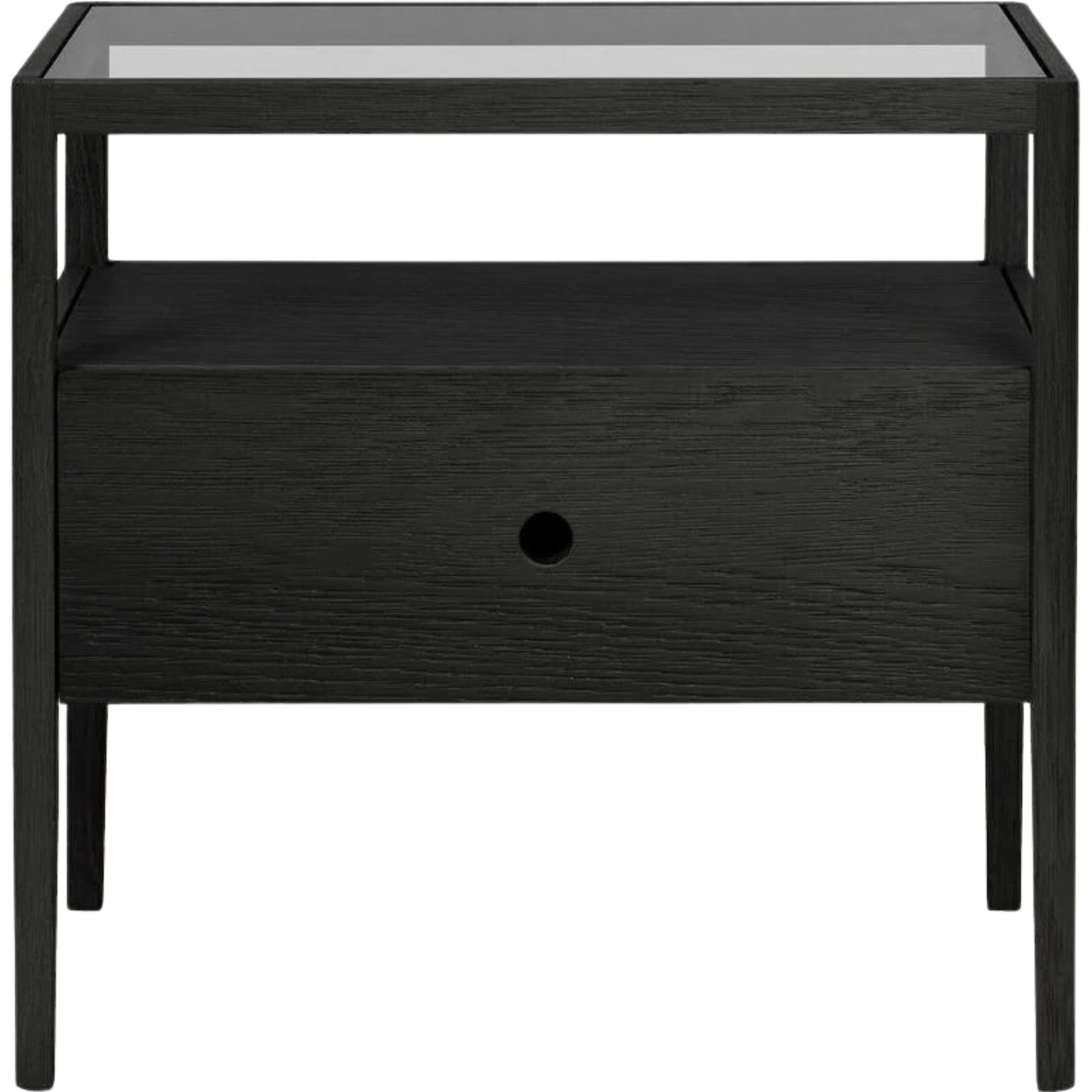 Featuring Spindle Bedside Table Oak Black by Ethnicraft at Amethyst Home. With its one drawer, open space and slightly tapered legs, the Spindle bedside table is the perfect no-nonsense companion for the striking Spindle bed.