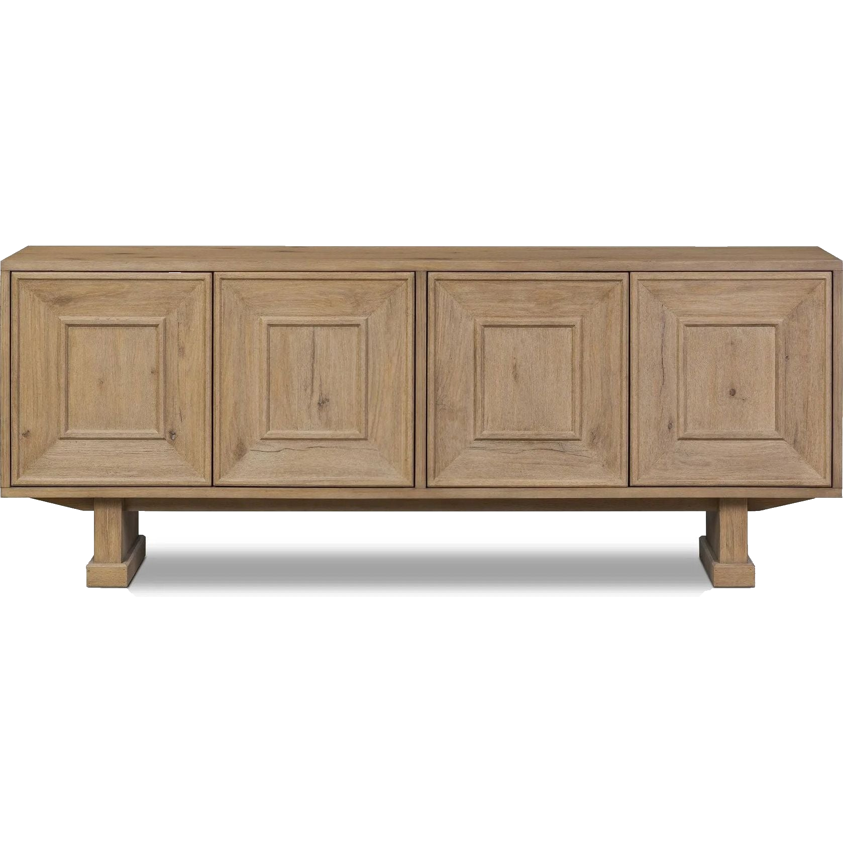 Store favorite dinnerware, table linens and more in this modernized Deco sideboard, with inverted chamfered framing and molding around the doors. Made from solid oak with a light, drifted finish and ski-style legs that elevate the whole piece Amethyst Home provides interior design, new home construction design consulting, vintage area rugs, and lighting in the Tampa metro area.