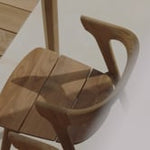 Reminiscent of a goat's curved horns, the Bok collection combines sculptural elegance and contemporary crafting into a graceful and airy form. Just like its matching chair, the Bok dining table is another signature design. Its airy shape yet rock-solid construction make this piece a timeless and remarkable design to enjoy for all the years to come, while the adapted grooved tabletop in solid teak makes outdoor life a simple pleasure.
