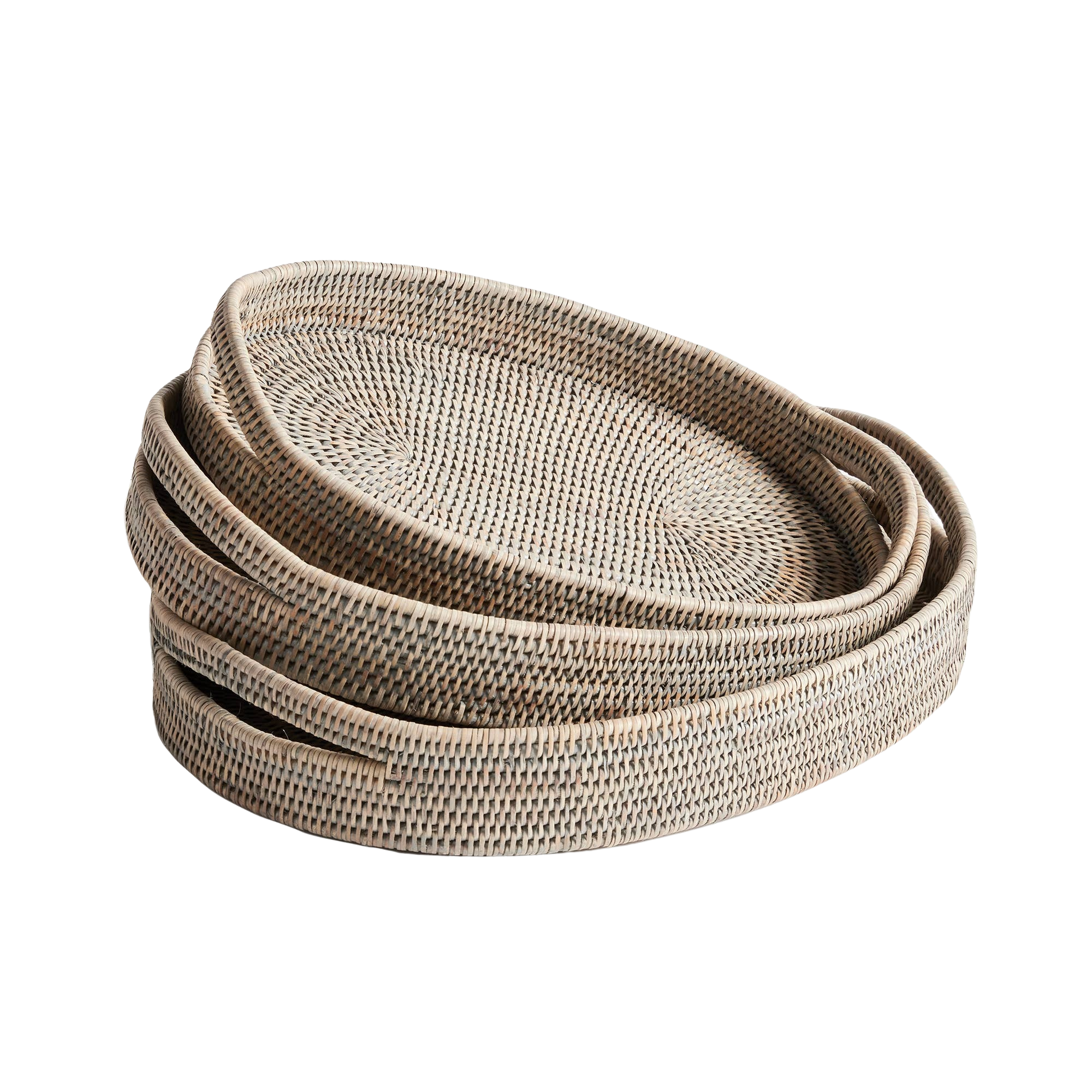 From the signature tight weave to the whitewash finish, Burmese artistry is truly exceptional. A level of skill and craftsmanship handed down from generation to generation. Color: Graywash. Gorgeous, signature tight weave, Made by highly skilled craftsmen, Interior use only, Set of 3 included: 22 x 16 x 4, 20 x 14.25 x 3.75 and 18 x 12.25 x 3.25 inches. Interior use only. Dust with soft cloth. Do not use harsh chemicals.