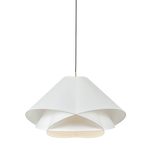 The dynamically layered design of the Edna pendant seeks to push the boundaries of what is possible with a handmade paper shade construction. Constructed as one piece, the shade is comprised of three identical pieces that intersect one another in a perfect geometric array. This artful paper pendant is accented by a Vintage Gold Leaf finial and available in two sizes.
