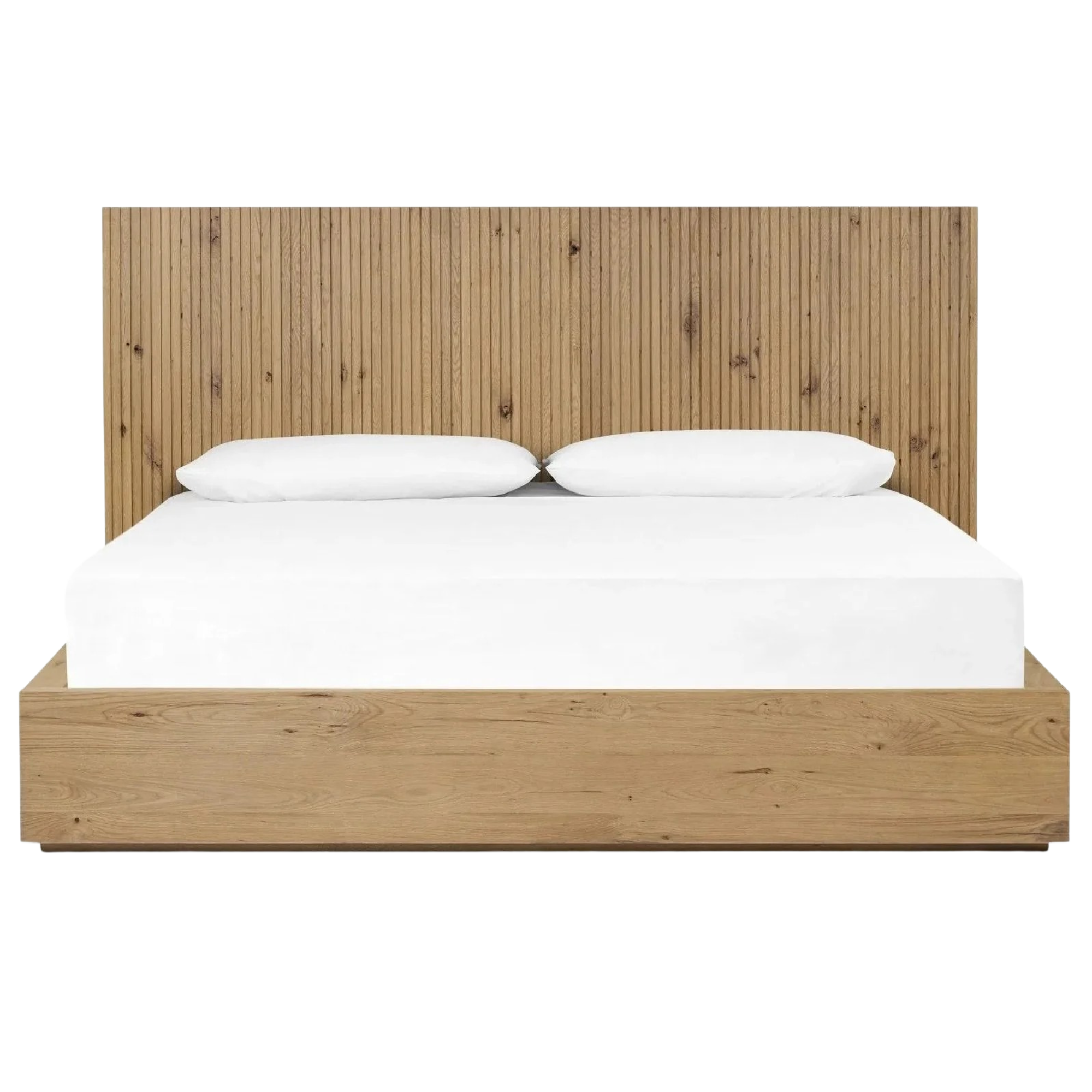 Featuring Leo Rustic Light Natural Oak Bed by Four Hands at Amethyst Home. Introducing the Leo Rustic Light Natural Oak Bed, the epitome of elegant and tasteful design. Crafted from premium oak, this bed exudes a sense of exclusivity and sophistication. Experience the ultimate comfort and style in your bedroom with this luxurious piece.KingOverall Dimensions: . Amethyst Home provides interior design, new home construction design consulting, vintage area rugs, and lighting in the Boston metro area.