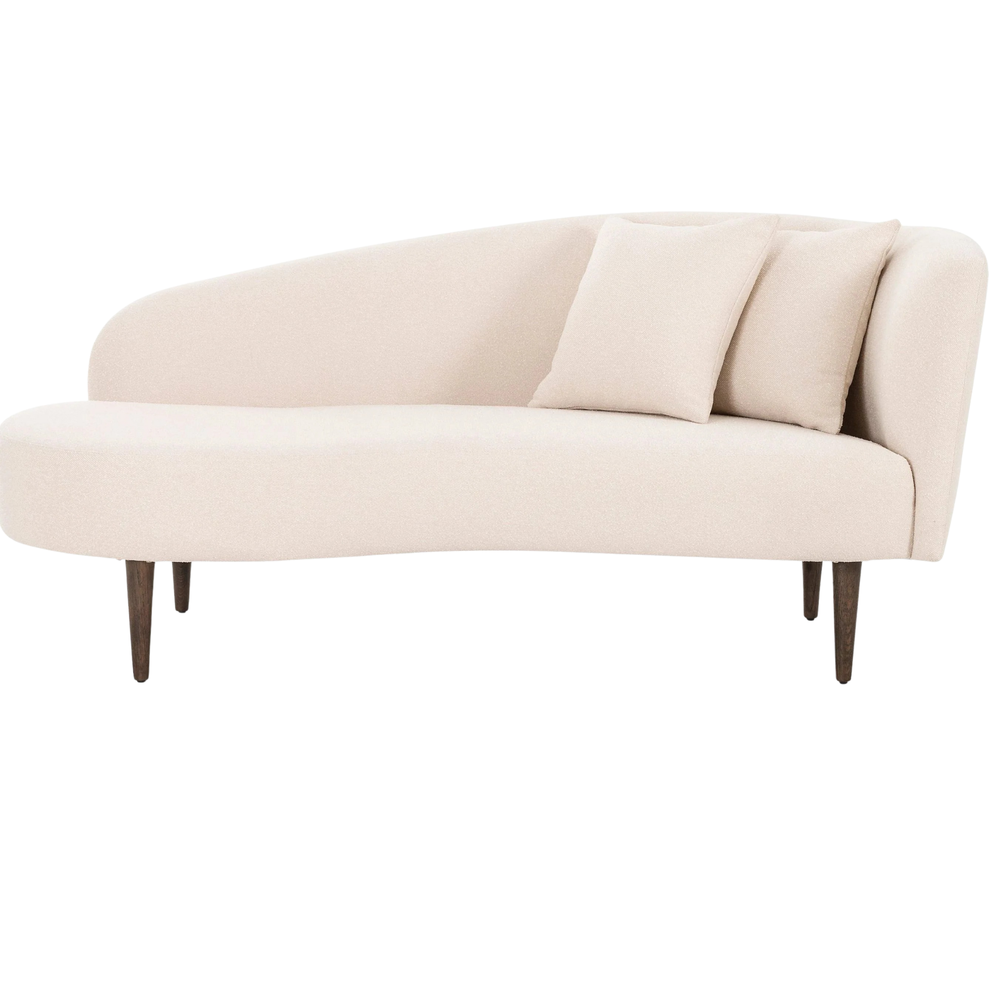 This curvy, Italian-inspired Luna Chaise exudes attitude. This features exclusive performance-grade ivory boucle in a striking, sultry S shape. Dual pillows for a fine finishing touch for any bedroom, office, or living room.
