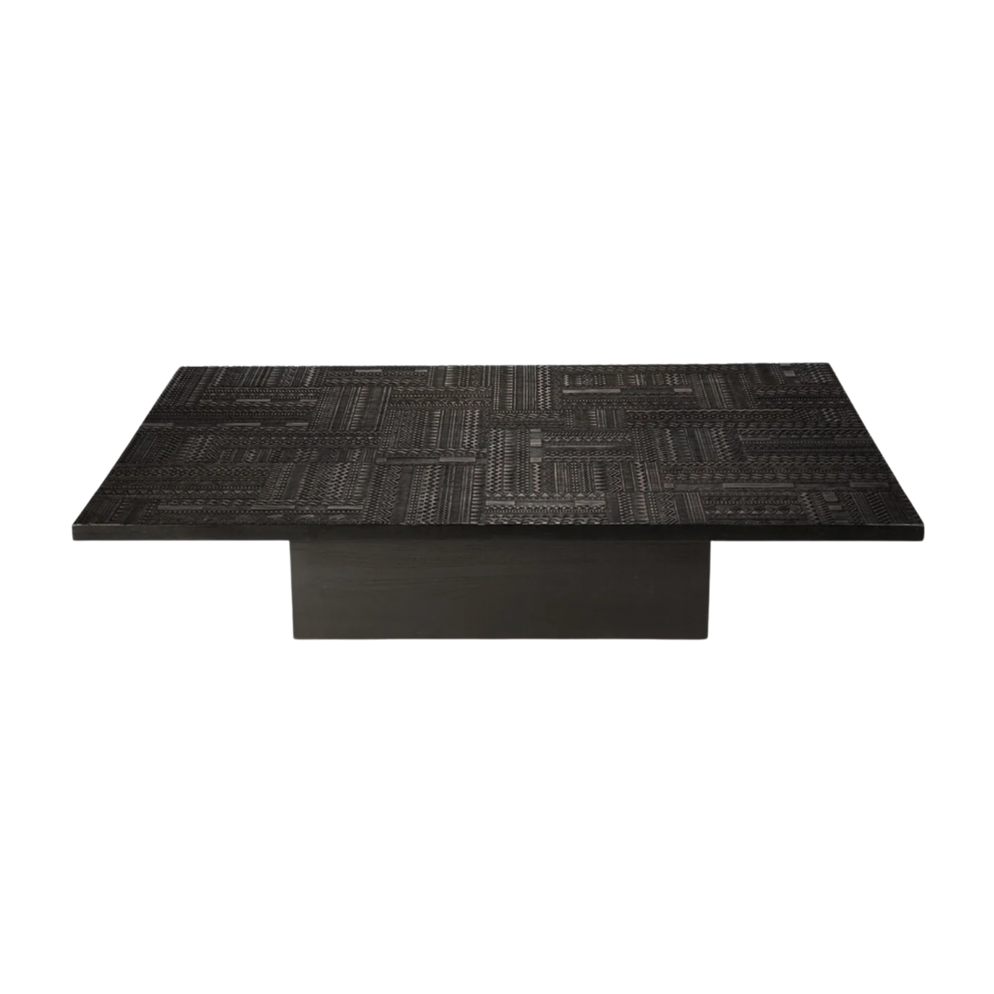 We love the contemporary feel of this Teak Tabwa Blok Coffee Table. The table is transformed into unique pieces of art, with each pattern carefully carved by artisans.