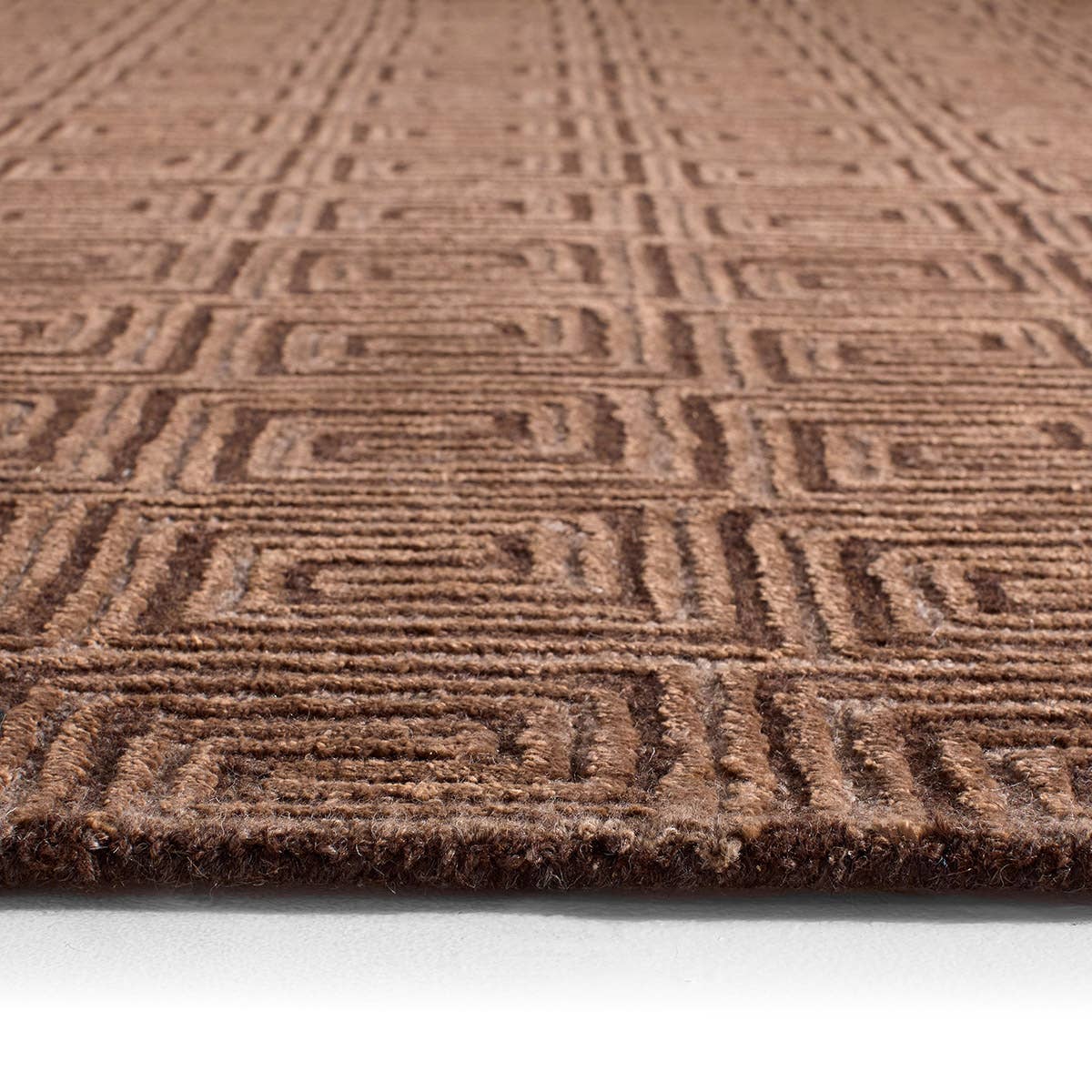 The Capital collection takes classic motifs to a whole new level of chic. The Harkness area rug showcases a striking Greek key design in a texture-rich looped and cut pile. Viscose adds a subtle luster and soft feel to the natural wool fibers, while a stunning brown colorway makes a statement.