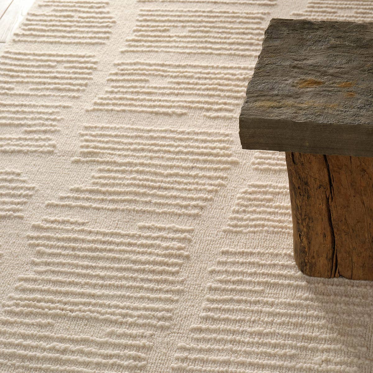 100% hand-crafted wool yarns in a harmonious blend of elevated neutrals artfully mingle in the Finnigan collection. The Radha design’s relaxed, laissez-faire modern lines pattern encourages the eye to wander across the faintly global-inspired pattern. An over-tufted finish adds a dynamic high-low texture, elevating the design.