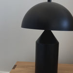 Illuminez n’importe quelle pièce avec cette élégante lampe Elder. Combinant un corps noir accrocheur peint à la main avec un abat-jour en métal noir, cette lampe sera certainement un ajout élégant à n'importe quelle pièce.
