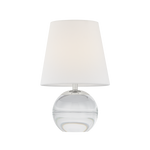 Ridged with ripple-like cuts, the crystal base of the Nicole table lamp makes for an eye-catching accent piece. Topped with a beautiful white linen shade, this pretty portable is rechargeable, adding convenience when styling. With classic Aged Brass-finished hardware, it’s the perfect addition to any bookshelf or small space.