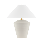 Inspired by raw beauty of the desert, this whitewashed terracotta table lamp is calm and refreshing. The textural body contrasts beautifully with the angular tapered white linen shade. An Aged Brass frame provides a surprising metallic finish. Part of THELIFESTYLEDCO® collection.