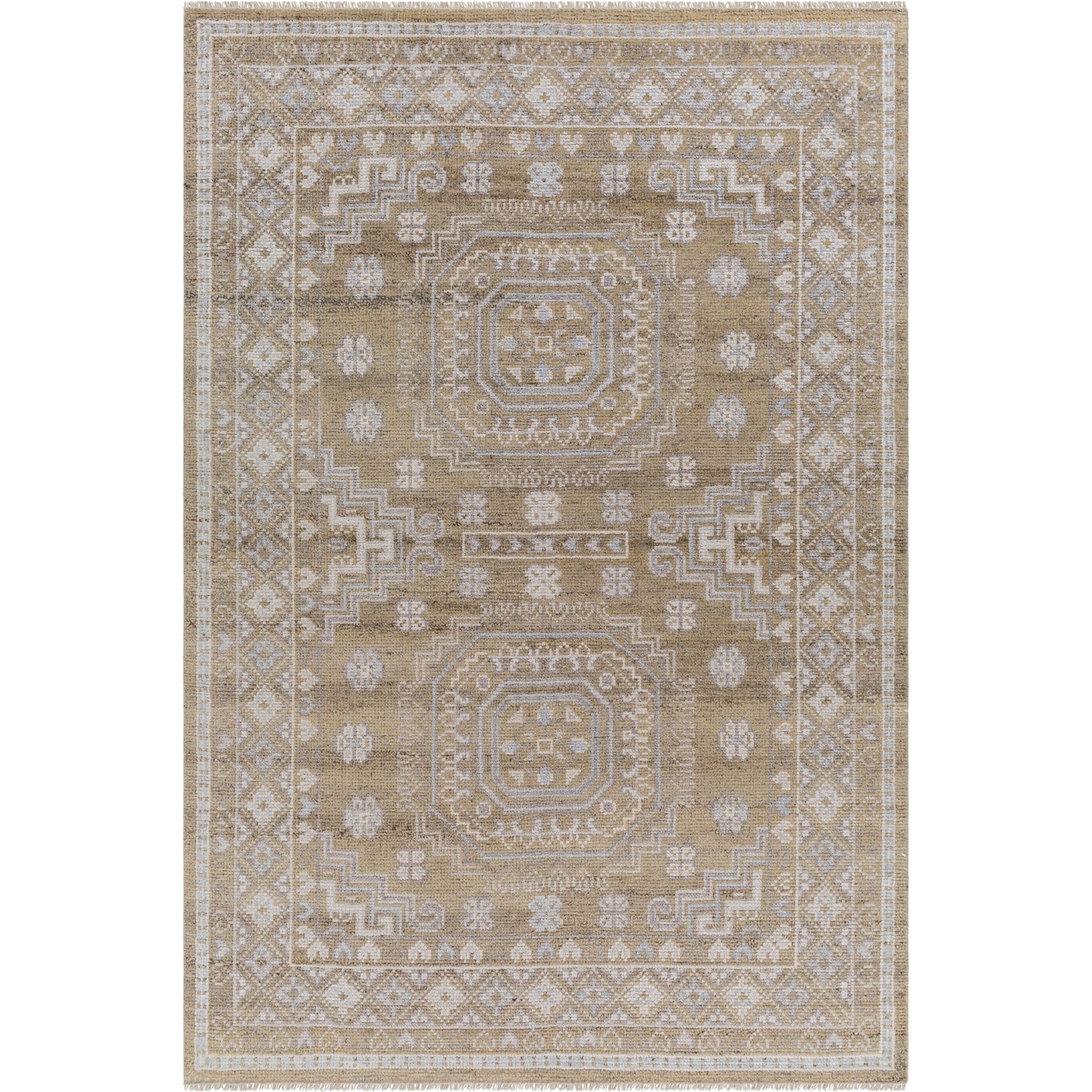 Featuring Almeria Taupe Hand-Knotted Rug by Surya at Amethyst Home. The Almeria Collection showcases traditional inspired designs that exemplify timeless styles of elegance, comfort, and sophistication. With their hand knotted construction, these rugs provide a durability that can not be found in other handmade constructions, and boasts the ability to be t.  Amethyst Home provides interior design, new home construction design consulting, vintage area rugs, and lighting in the Park City metro area.