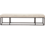 Featuring Beaumont Bench - Plushtone Linen by Four Hands at Amethyst Home. The Beaumont Plushtone Linen Bench has streamlined shaping and is textural to the touch. Gunmetal-finished iron framing stands slim and structured to support a well-tailored top of plush, linen-like upholstery. Open, adaptable styling allows for versatile placement options.