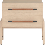 Le chêne au fini clair de cette table de chevet Rosedale apporte une luminosité nette à n'importe quelle pièce. Nous aimons la façon dont les deux tiroirs spacieux sont dotés de ferrures en fer enveloppées dans un magnifique cuir beige. Les pieds dimensionnels avec fer qui les relie apportent un look unique à votre chambre ou autre espace !