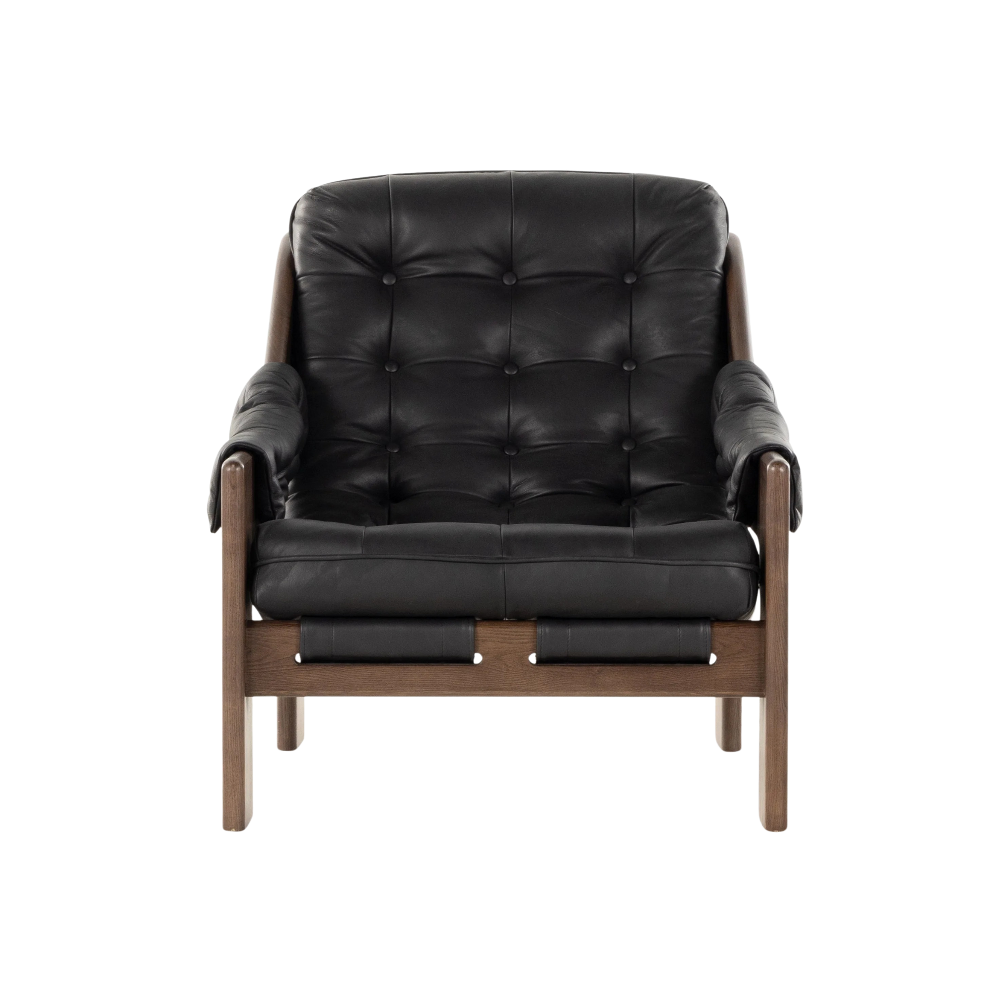 Featuring Halston Black Leather Chair by Four Hands at Amethyst Home. Featured in one of our recent home tours -- the Halston leather chair is the ultimate in comfort and surprised everyone who sat in it.  It has a hammock sling style construction that just feels sooo right.