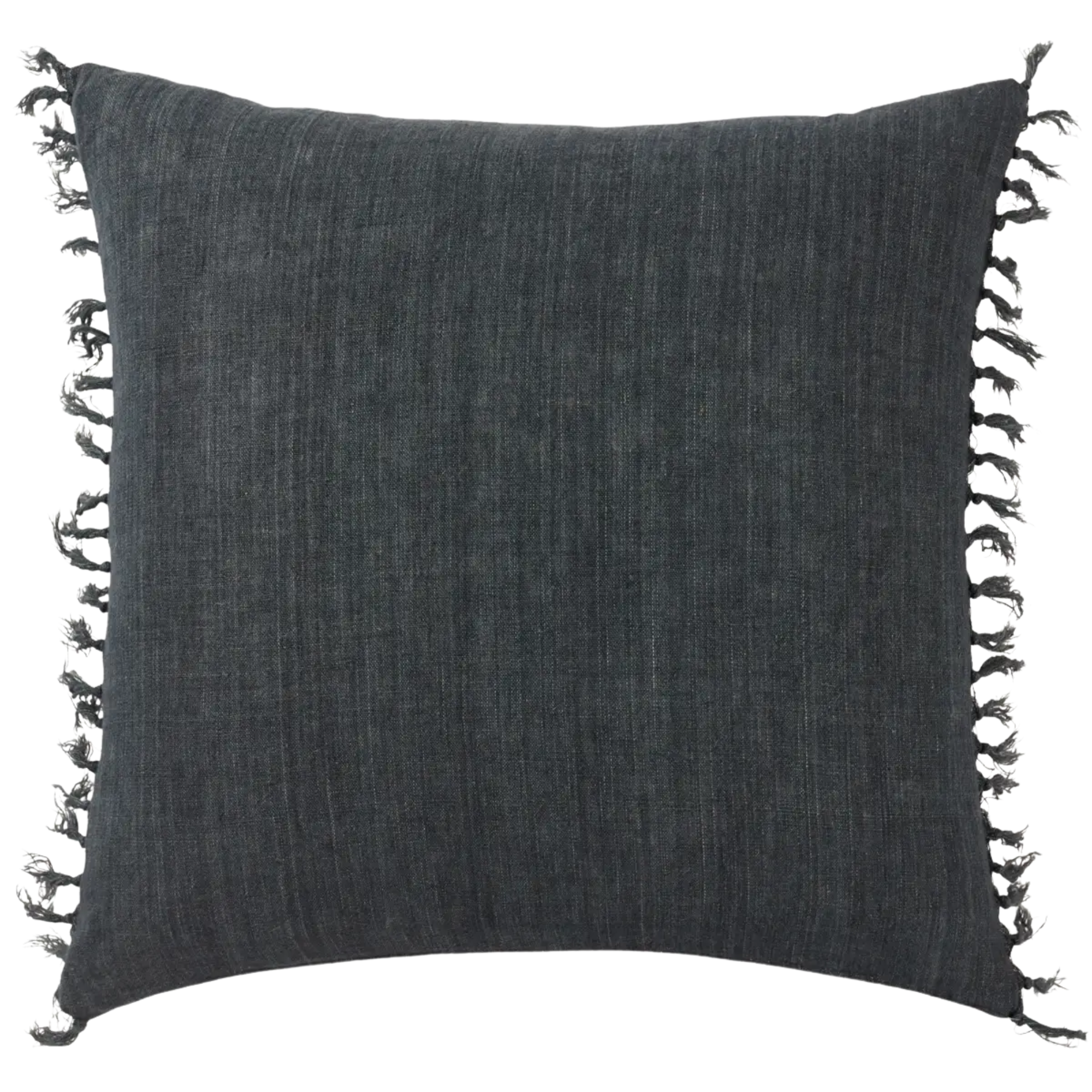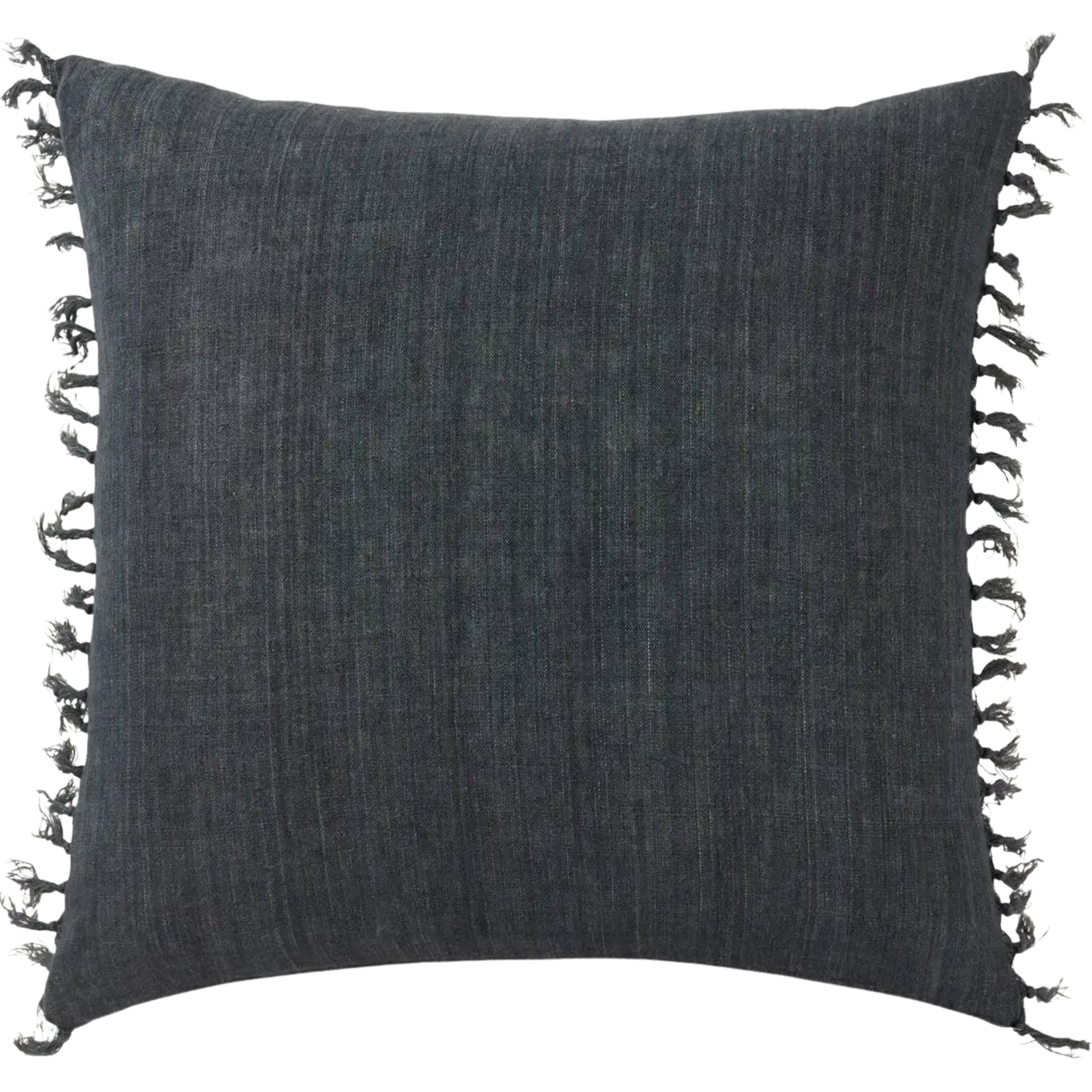 Featuring Jemina Dark Slate Pillow by Jaipur Living at Amethyst Home. The Jemina Dark Slate Pillow boasts an assortment of relaxed linen designs with rustic-style knotted tassels lining the sides. The comfortable Majere throw pillow delights with a bold navy hue and subtle bohemian vibe that perfectly accents sofas, chairs, and beds alike. This casual yet sophisticated pillow thrives in i. Amethyst Home provides interior design services, furniture, rugs, and lighting in the Kansas City metro area.