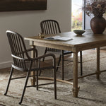 Inspired by antique Whistler dining chairs, this rich wood dining chair features a taller spindle back that flows seamlessly into the low arm design. A subtle kickback detail on the back legs adds something extra. A design collaboration by Amber Lewis and Four Hands. This item has limited online distribution and may not be sold on websites without prior approval. Visit the FAQ page in our Help Center for more details.