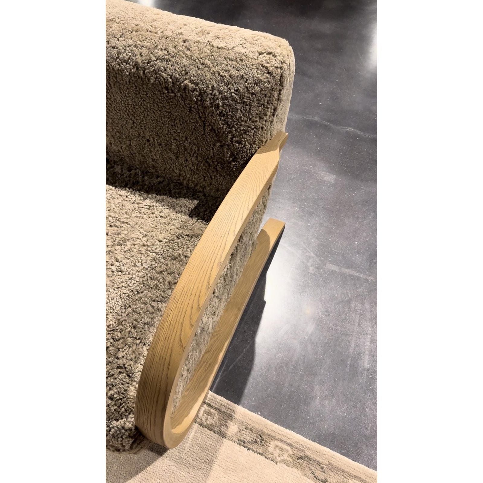 Soft texture and eye-catching contours fuse in this comfort-driven accent chair, pairing a low, luxurious shearling seat and dramatic bent wood frame.