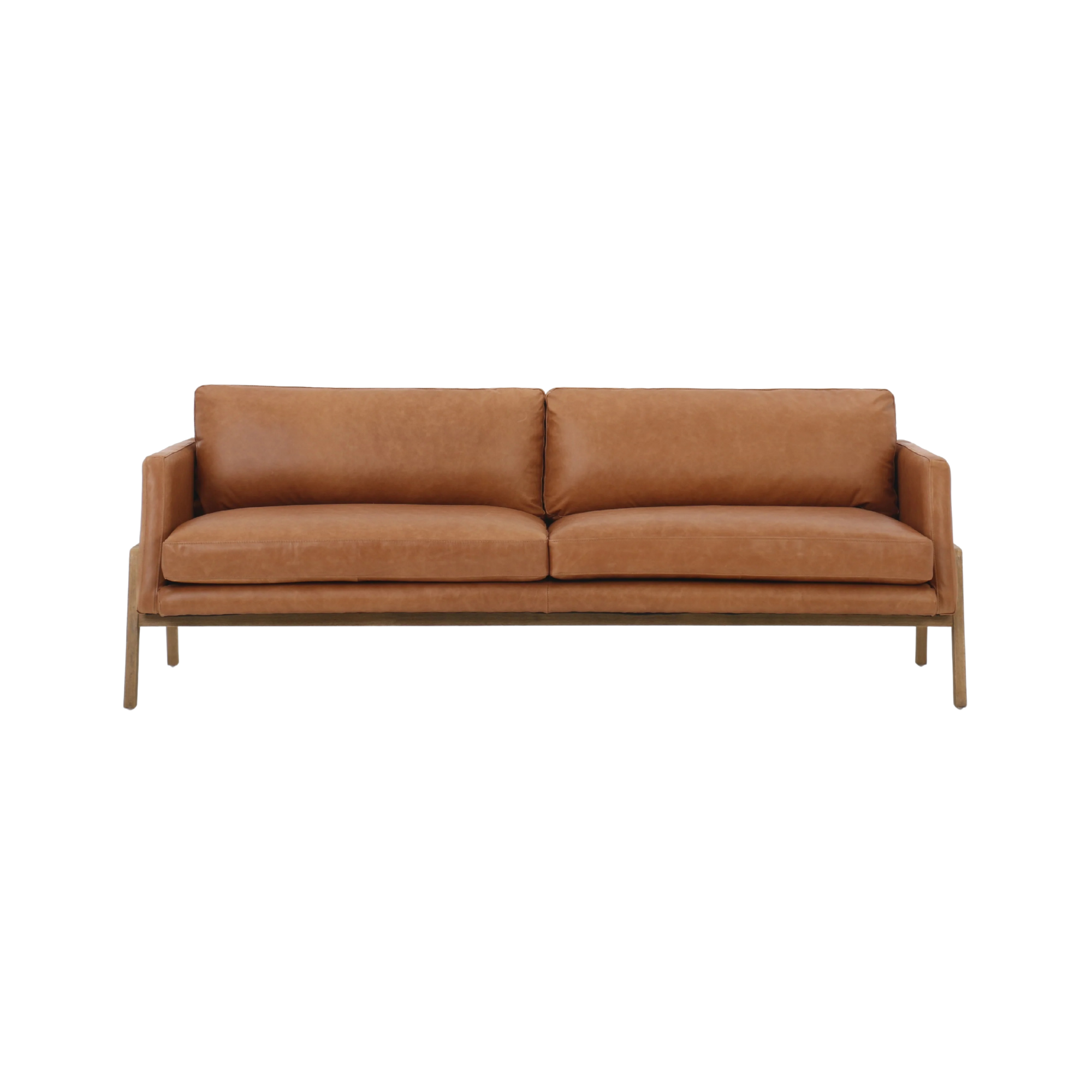 Cuir beurré dans une palette moderne, le canapé Diana est charmant et ultra confortable. Le détail du cadre en bois est une touche très spéciale.