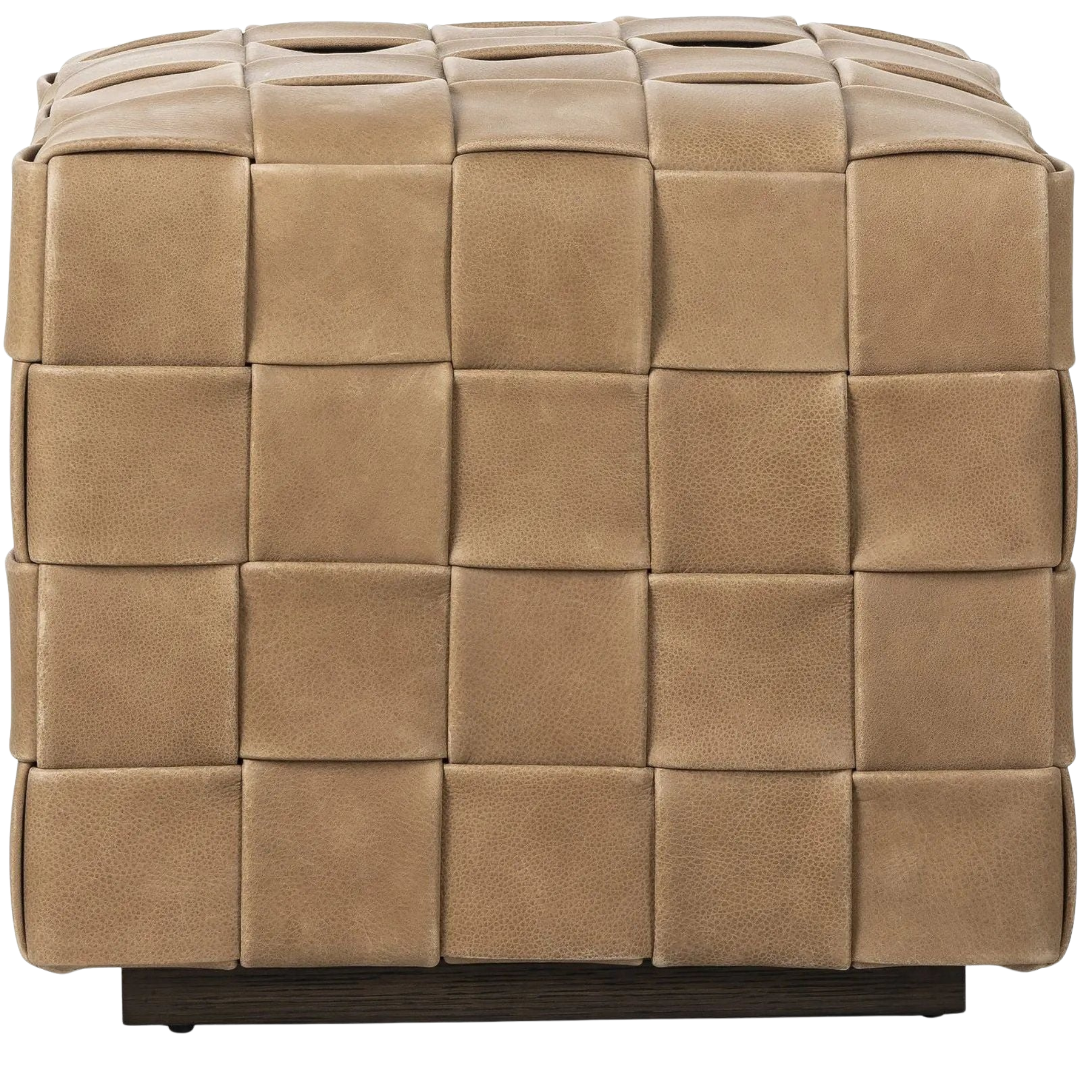 Featuring Flores Palermo Drift Ottoman by Four Hands at Amethyst Home. Soft, specialized top-grain leather is hand-woven, crafting a look of a treasured vintage find. Use as bonus seating or style with a tray for an extra surface.Overall Dimensions: 19.50"w x 19.50"d x 17.00"hWeight : 31.31 lbsMaterials: Top Grain Leather, Solid Oak, 100% Polyester. Amethyst Home provides interior design, new home construction design consulting, vintage area rugs, and lighting in the Salt Lake City metro area.
