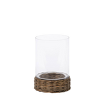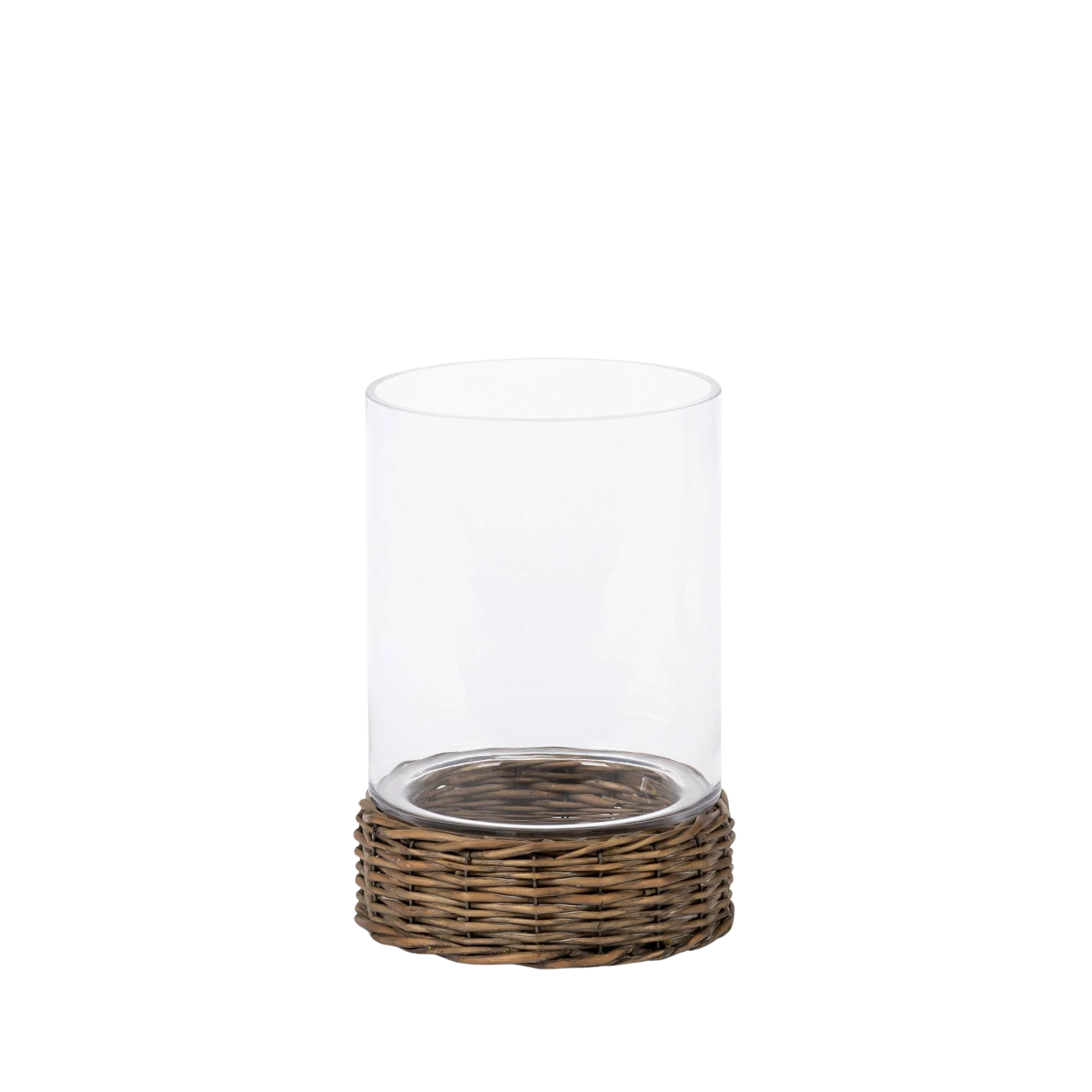 Add some light and warmth to your home decor with this 6.9-in diameter by 9.4-in tall glass and willow decorative hurricane. Fill the hurricane with real or faux floral, an a real LED candle, or leave it as is for a wonderful modern farm vibe in your living space. This piece is large enough to stand alone or is perfect to pair with your the decorative objects in your house. You will not be disappointed by this piece! The glass is thick and made to last and sits upon a natural willow base for a wonderful mixture of natural elements.