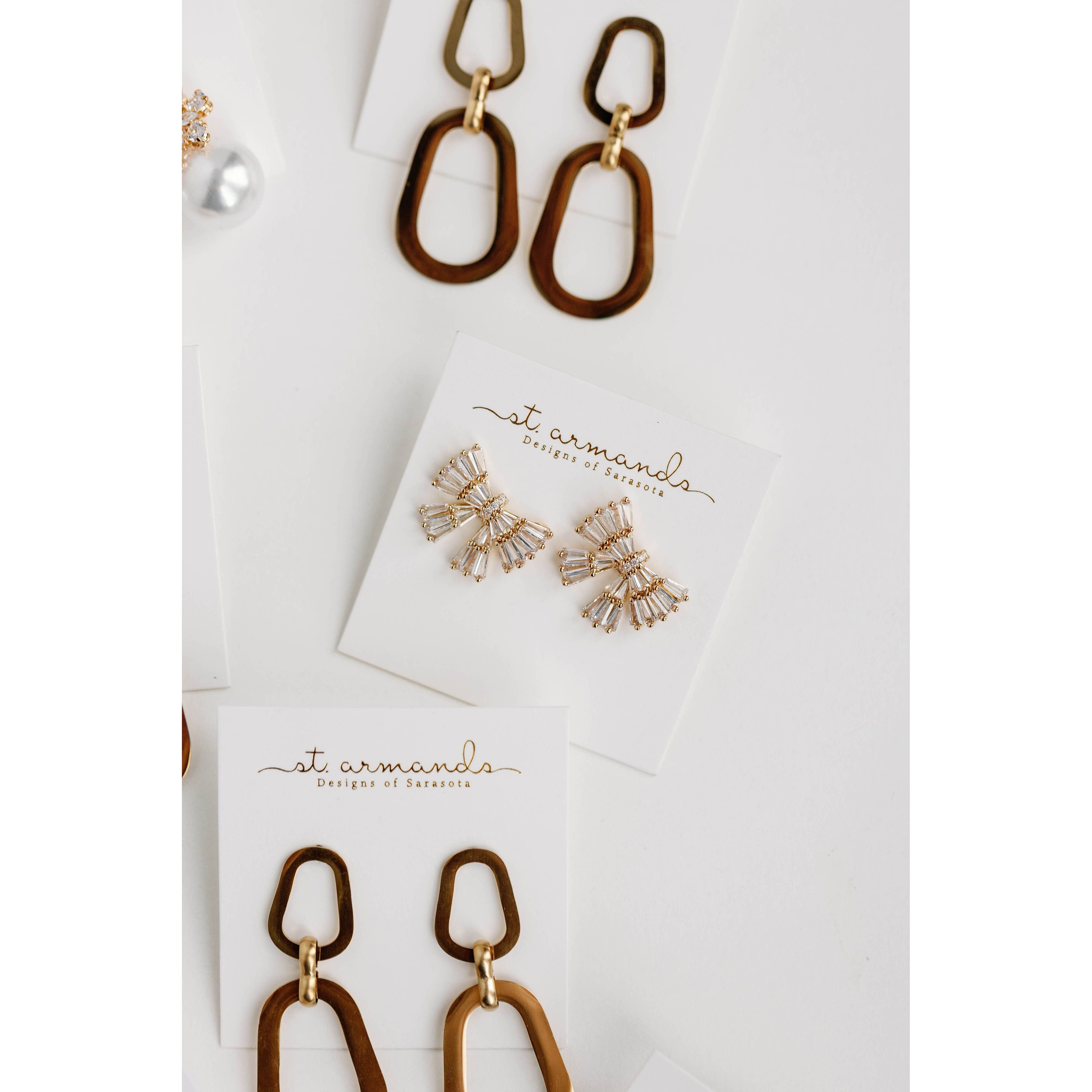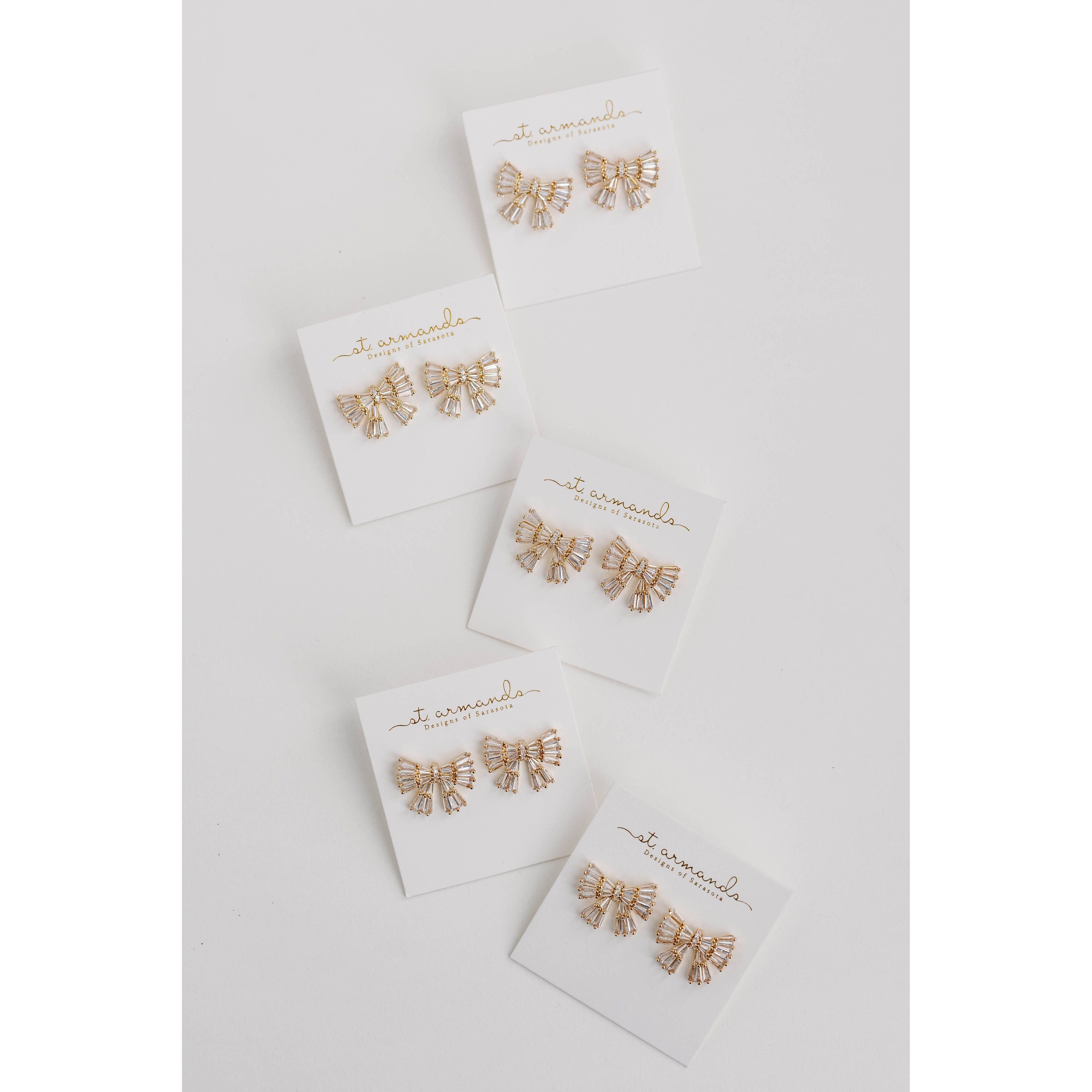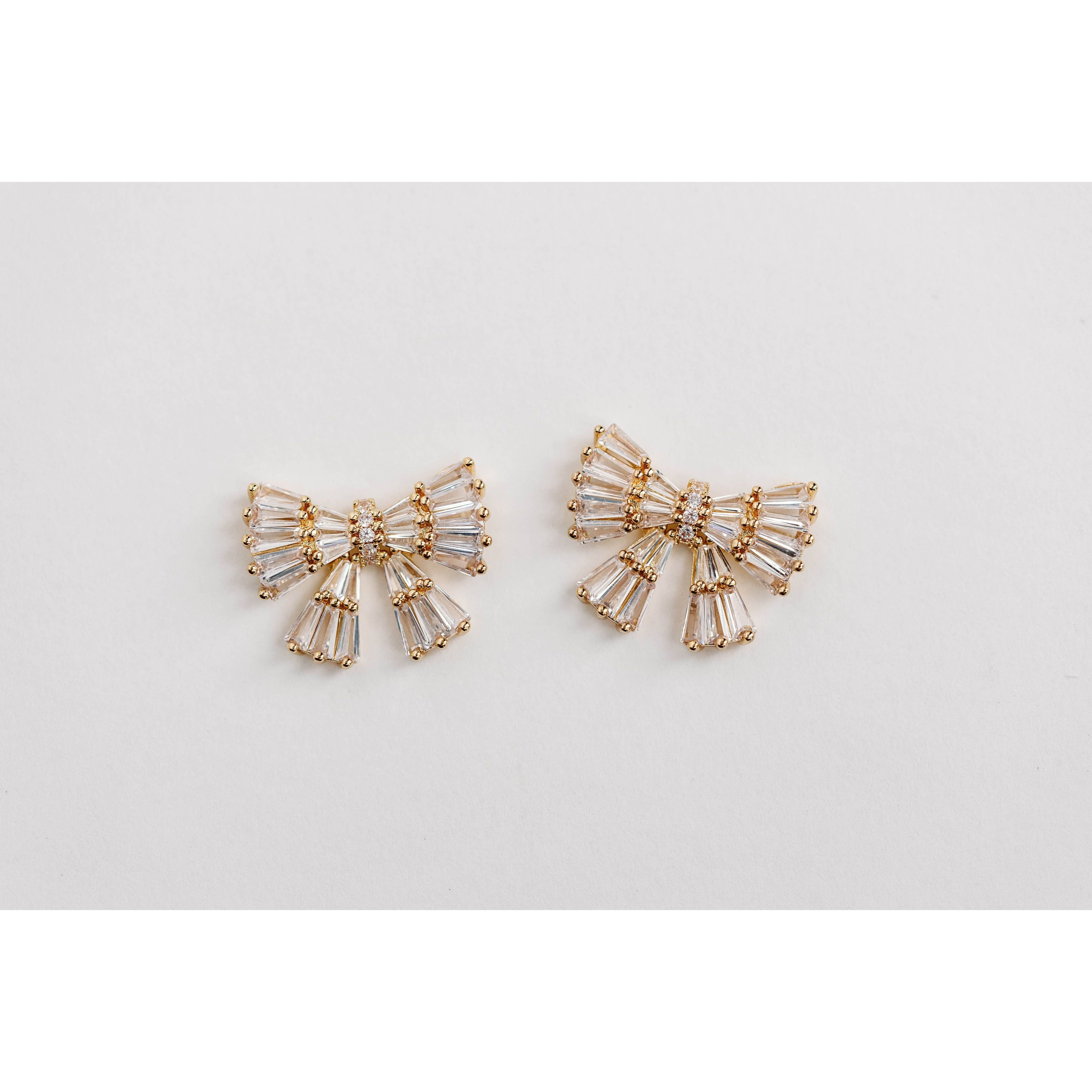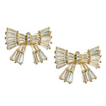 Gold Maxi Sparkler Holiday Statement Stud Bow Earrings
