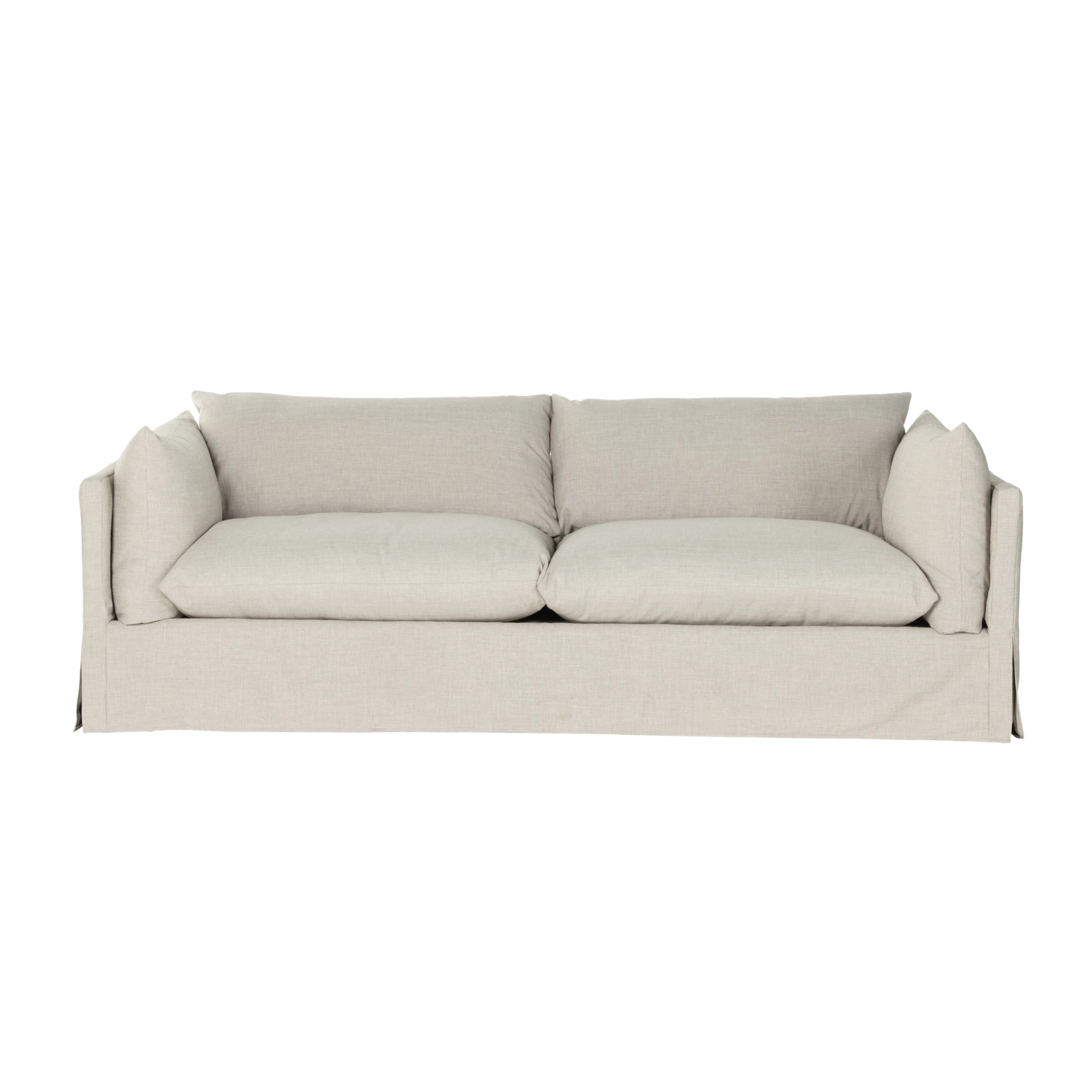 Featuring Habitat Bennett Moon Sofa by Four Hands at Amethyst Home. A slipcovered sofa made for modern living. Shelter arms and big, pillow-inspired cushions are covered in a durable comfortable fabric prime for lounging. Performance fabrics are specially created to withstand spills, stains, high traffic and wear, ensuring long-term comfort and unmatched durability.