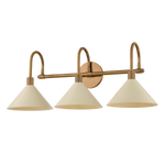 A modern interpretation of Art Deco shapes, the Jovani bath bar features elongated arms and sharply tapered Soft Sand shades. The clean design highlights the connections between elements through pronounced fittings and subtle fluting details. Finished in classic Patina Brass, Jovani is available with 1, 2, or 3 lights.