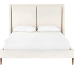 Featuring Potter Dover Crescent Bed by Four Hands at Amethyst Home. Welcome light, livable luxury into your bedroom with a fully upholstered bed. A tapered headboard features a fixed oversized cushion of high-performance fabric, creating a soft, layered look. Understated wooden legs complete the design. Performance fabrics are specially created to withsta. Amethyst Home provides interior design, new home construction design consulting, vintage area rugs, and lighting in the Los Angeles metro area.