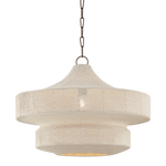 Inspired by the sea-faring community of Scotland, Thurso hovers between tension and release. Recalling the comfort of a ferry station during harsh conditions, the artist Chandler McLellan sought to imbue this pendant with a soft warmth in both materiality and luminance. A thick off-white cotton crochet fabric has been stretched across the tiered framework of the fixture, naturally dipping in certain areas. As the weave eases and pulls, it creates larger and smaller gaps for light to escape. Coordinating with the earthy nature of the cord, the Bronze metalwork anchors this light-as-air pendant. Part of our Chandler McLellan collection.