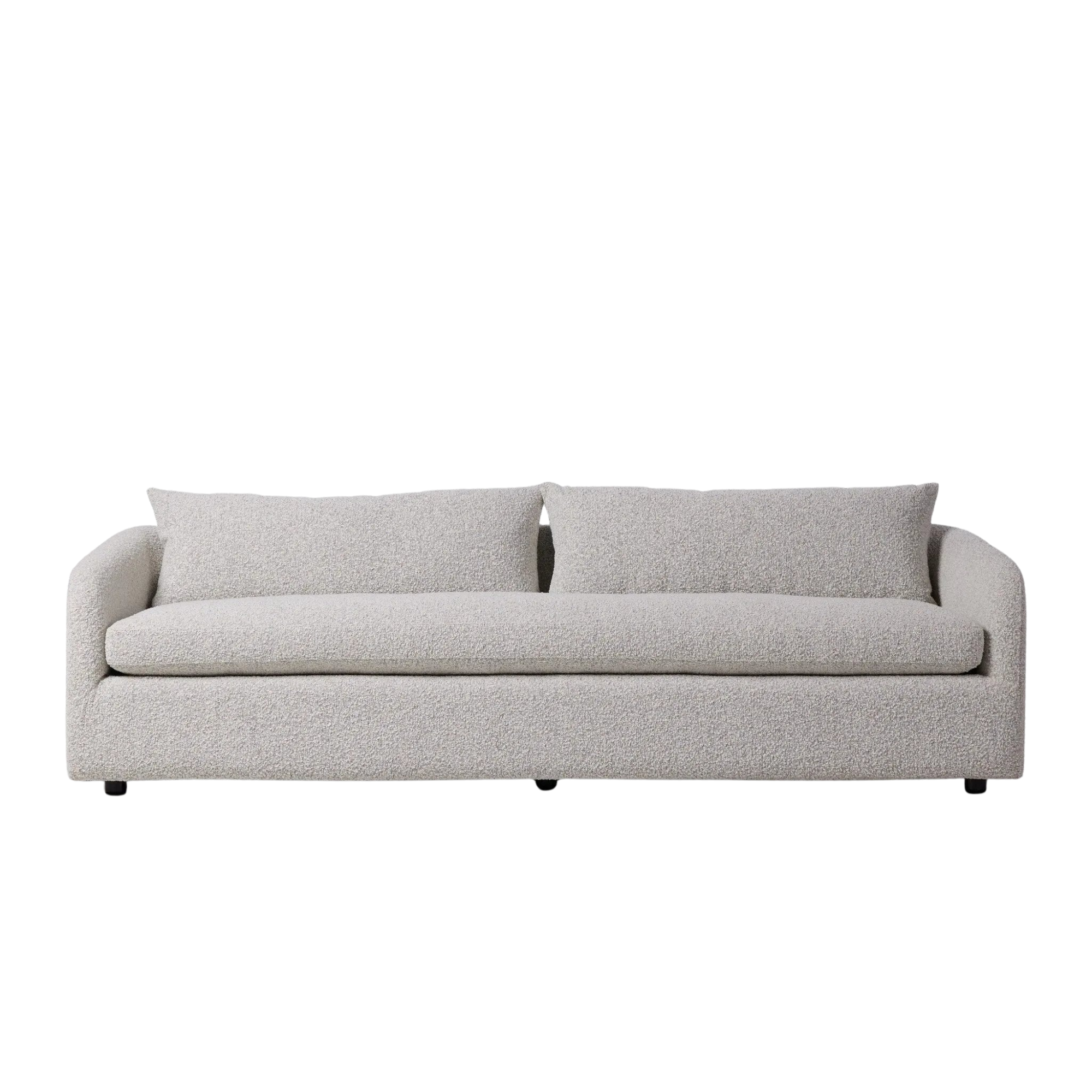 Textural boucle and angled arms give this sofa a stylish upgrade, while the two-over-one cushion configuration lend a laid-back look. Performance fabric is specially created to withstand spills, stains, high traffic and wear, ensuring long-term comfort and unmatched durability.