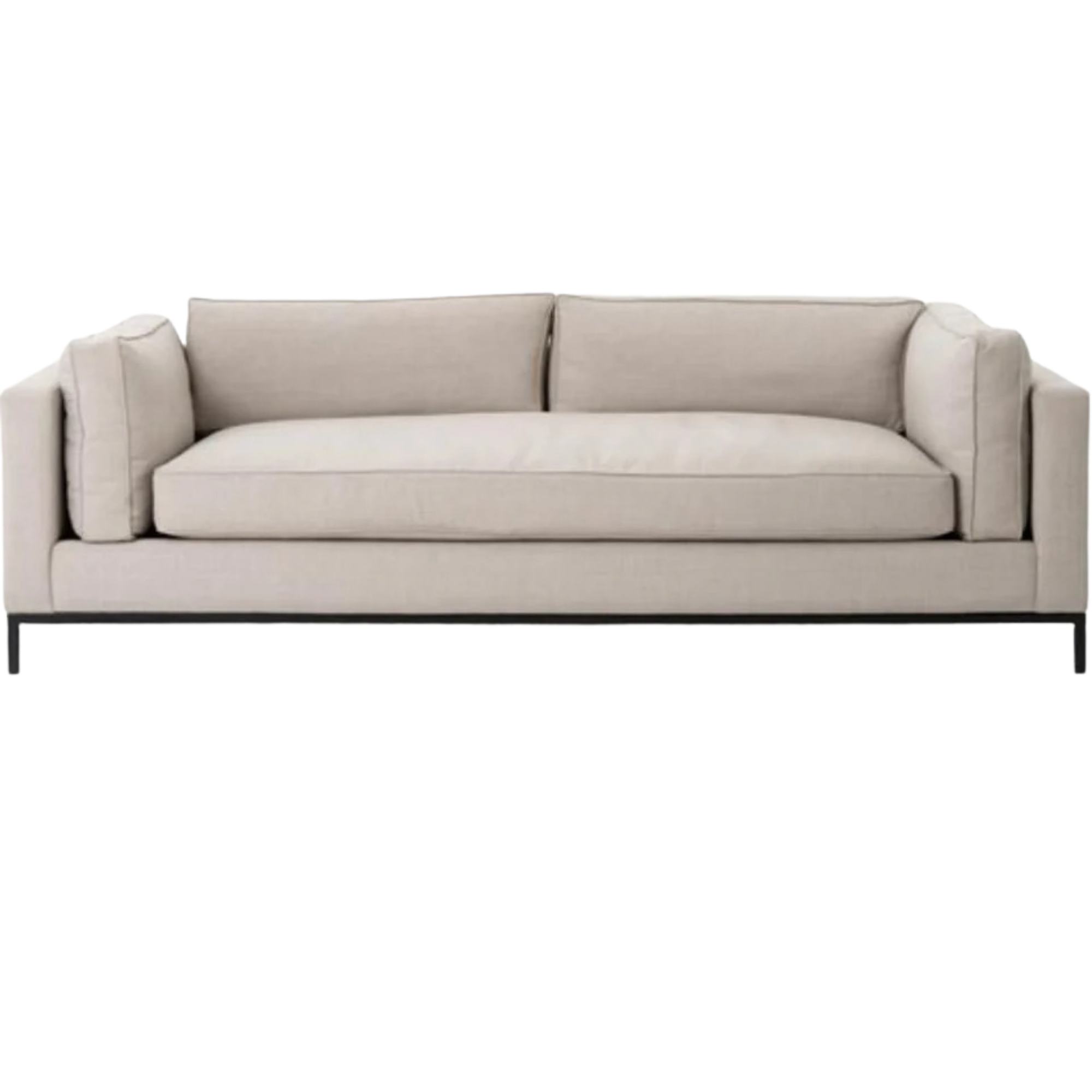 Featuring Grammercy Sofa - Bennett Moon by Four Hands at Amethyst Home. Streamlined yet comfortable!  We loved the subtle piping of the cushion details and beautiful neutral color!  Flexible style, luxurious comfort and family-friendly upholstery. Clean, simple lines and black iron base keep everything casual and chic.