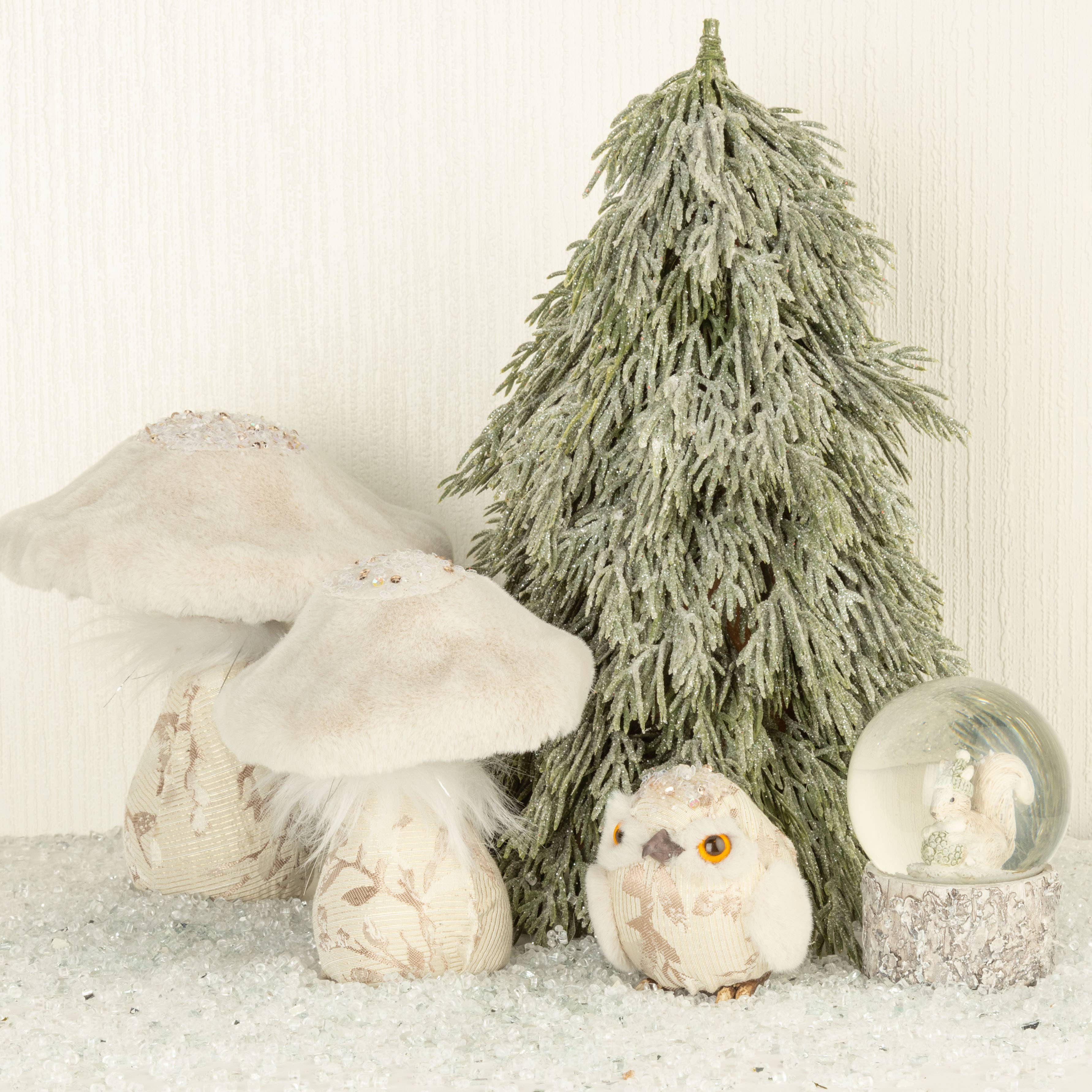 Frosted faux cedar table top tree, 12in. Please note that due to the nature of the materials, slight color variations may occur between individual items and compared to images.
