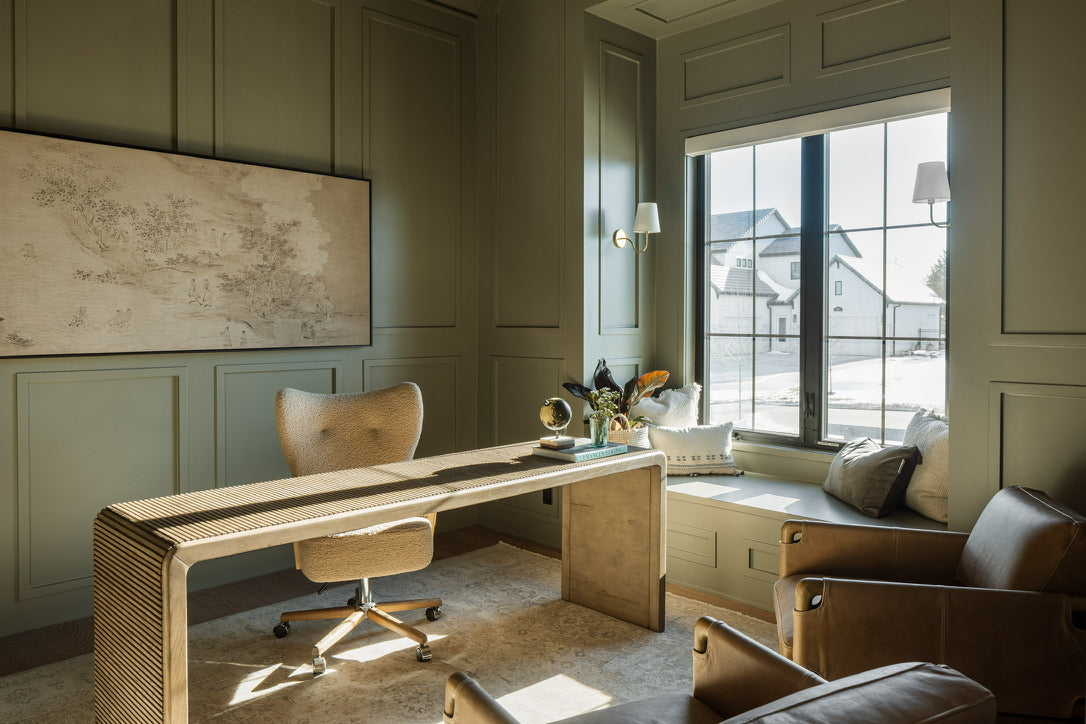 Chaise de bureau Melrose en peau de mouton camel | expédition le 9/02/2024