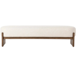 Featuring Kirby Alcala Cream Accent Bench by Four Hands at Amethyst Home. Style this modern accent bench just about anywhere. A cradle base of wire-brushed parawood supports a linen-like upholstered seat. Performance fabrics are specially created to withstand spills, stains, high traffic and wear, ensuring long-term comfort and unmatched durability.Overall . Amethyst Home provides interior design, new home construction design consulting, vintage area rugs, and lighting in the San Diego metro area.