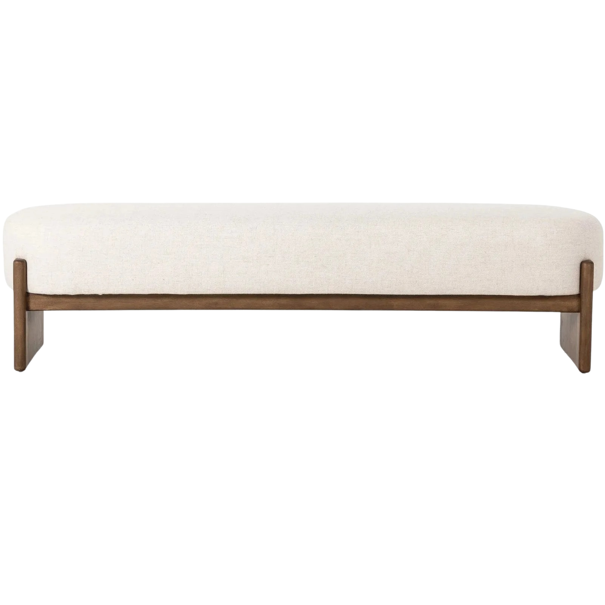 Featuring Kirby Alcala Cream Accent Bench by Four Hands at Amethyst Home. Style this modern accent bench just about anywhere. A cradle base of wire-brushed parawood supports a linen-like upholstered seat. Performance fabrics are specially created to withstand spills, stains, high traffic and wear, ensuring long-term comfort and unmatched durability.Overal. Amethyst Home provides interior design, new home construction design consulting, vintage area rugs, and lighting in the Los Angeles metro area.