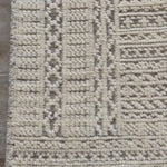 Featuring Reign Sharkskin/Quiet Gray Hand-Knotted Rug by Jaipur Living at Amethyst Home. The captivating Reign collection introduces detail-rich design and inviting carved pile to contemporary and traditional homes alike. The hand-knotted Jadene rug boasts an intricate geometric design in a neutral ivory and light gray colorway. This wool rug's textured pat.  Amethyst Home provides interior design, new home construction design consulting, vintage area rugs, and lighting in the Monterey metro area.
