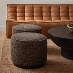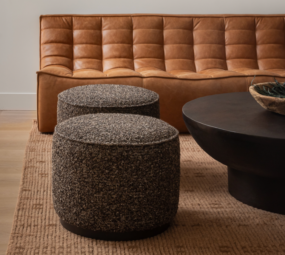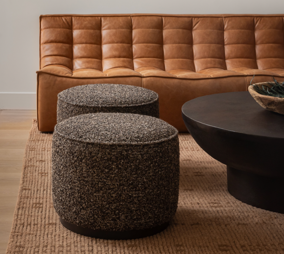 This round ottoman of textural upholstery can be placed just about anywhere, bringing with it a hip retro vibe.