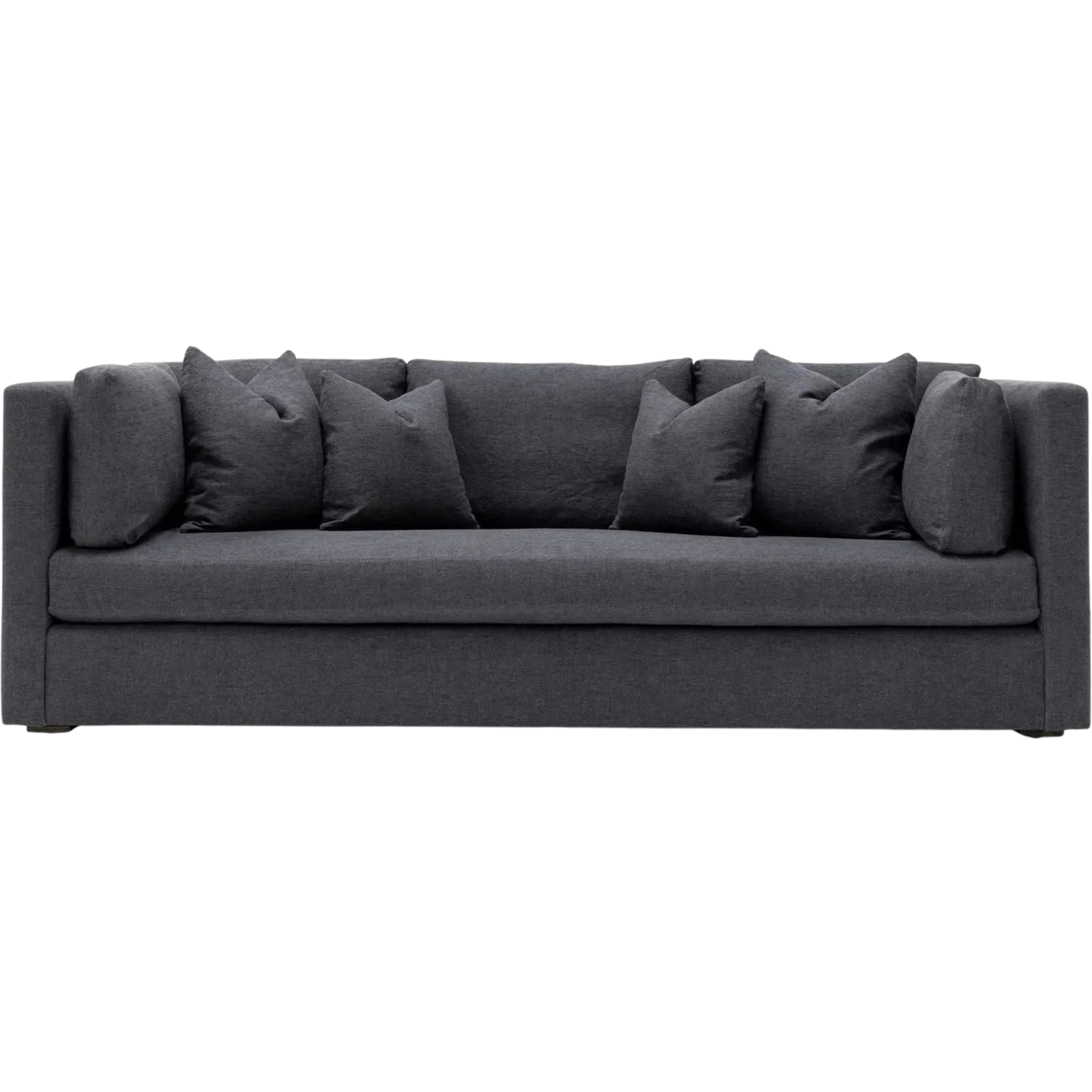 The Lawrence Sofa boasts a sleek, contemporary design with clean lines and an abundance of plush arm, back, and toss pillows for unparalleled comfort. Available upholstered with a loose seat cushion or slipcovered with a semi attached tight seat.