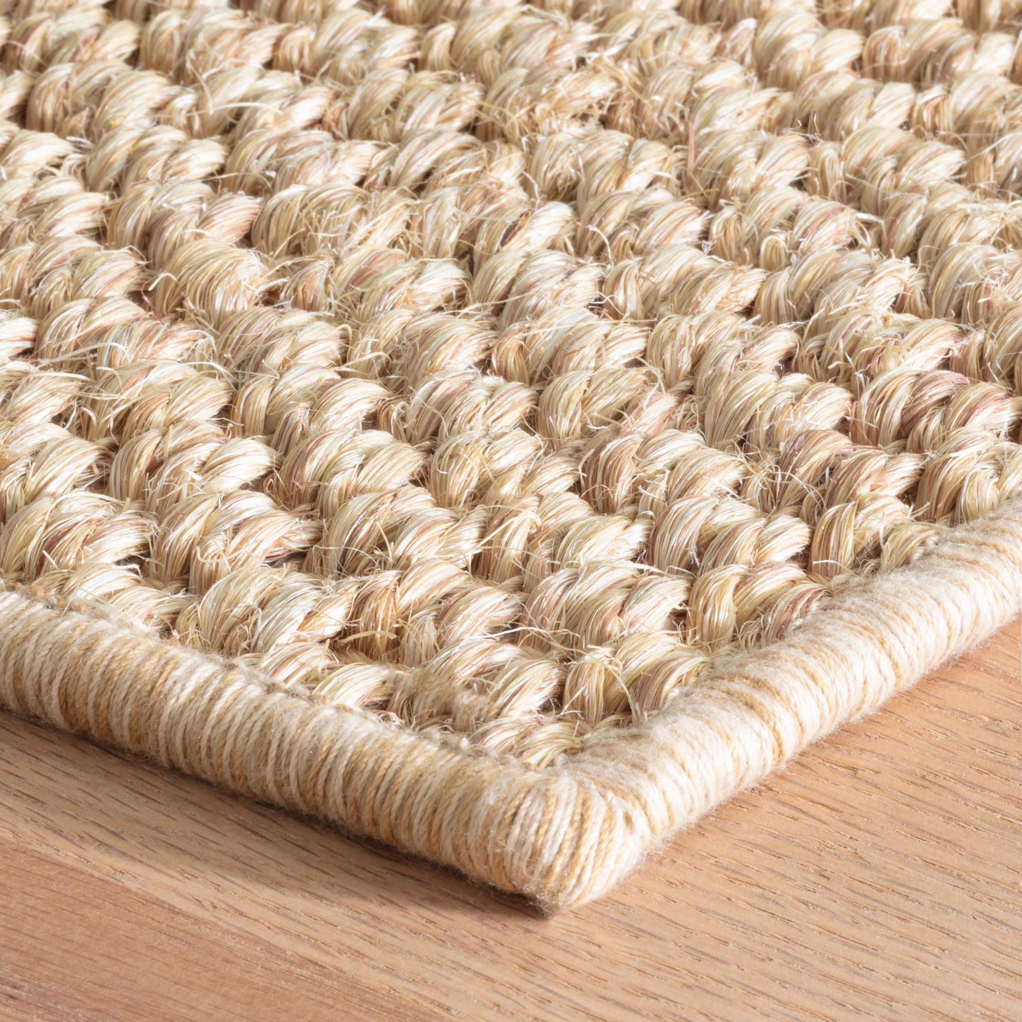 Ramp up the texture with substantial and stylish sisal, an all natural, sustainable plant fiber that is perfect for adding rustic-chic depth to high traffic areas. This chunky and robust cobblestone stitch is a sturdy addition to our custom cut rug collection and will look good for years to come. Marled yarn in earthy shades of Taupe- a cool , light natural, Honey- a warm, rich natural, Natural- a golden wheaty natural, Silver- a cool washed, light neutral, Sand- a bleached, light natural, Charcoal- a dense, dark grey.